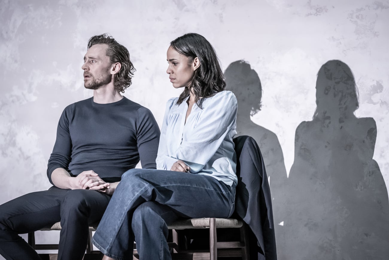 En la producción del director Jamie Lloyd, Hiddleston y Ashton están envueltos en los brazos del otro mientras analizan el compromiso fatal de su propio matrimonio. Lo que está en juego es enorme y, aunque la audiencia ha sabido por mucho tiempo lo que Robert acaba de descubrir, la audiencia no tiene idea de lo que esta revelación revelará en realidad.